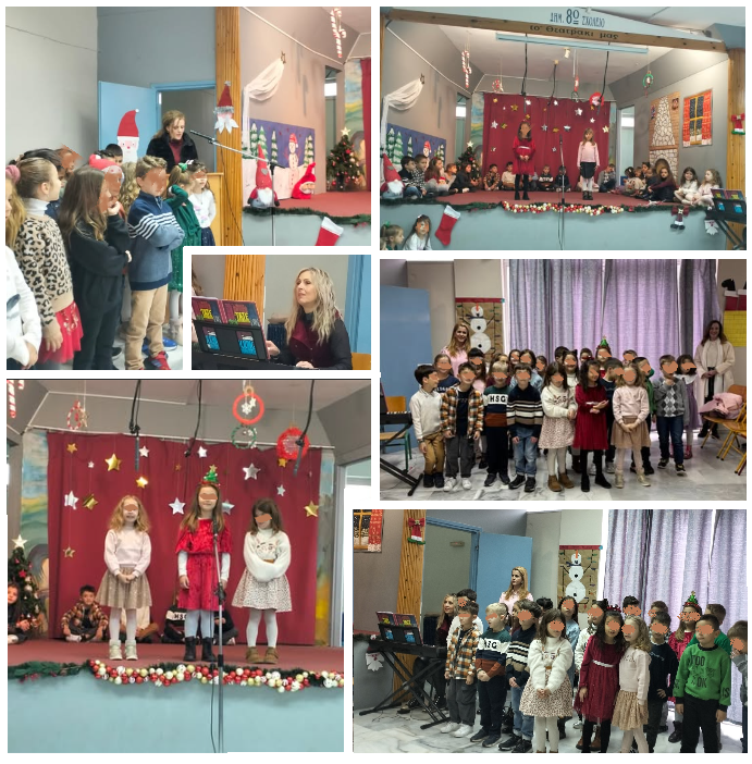 Τη Δευτέρα 23 Δεκεμβρίου τα παιδιά της Α’ και Β’ δημοτικού με την καθοδήγηση των εκπαιδευτικών τους, Γιαννούλη Αικατερίνη, Μπόσμου Χαρίκλεια, Τάσση Χριστίνα, Δεβελέγκα Κωνσταντίνα, Ζαρκάδα Μαρία, παρουσίασαν μια υπέροχη χριστουγεννιάτικη γιορτή. Οι μαθητές και οι μαθήτριες είπαν ποιήματα και τραγούδησαν χριστουγεννιάτικα τραγούδια.