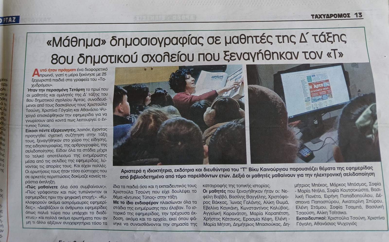 Οι μαθητές της Δ’ τάξης επισκέφτηκαν την εφημερίδα «Ταχυδρόμος της Άρτας».